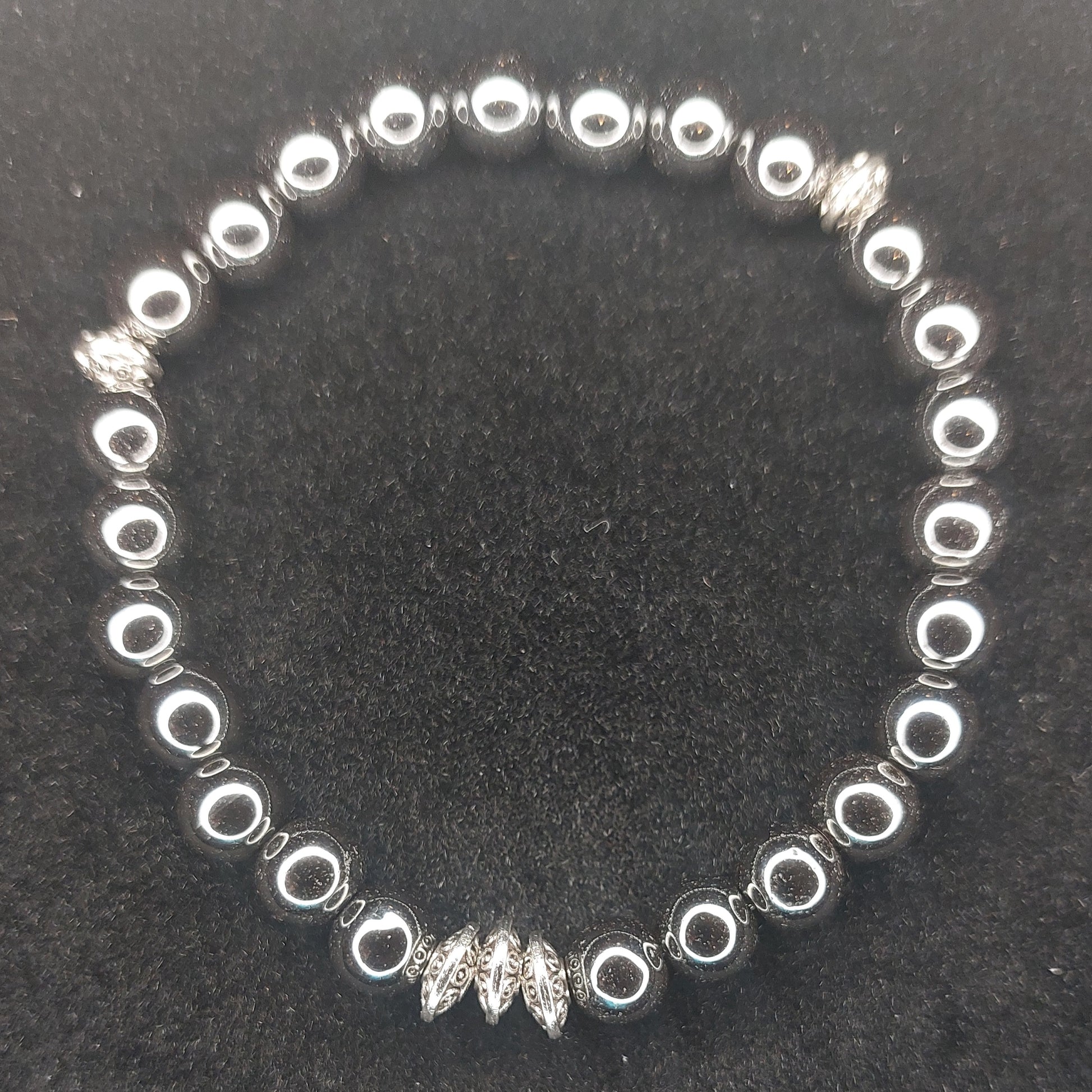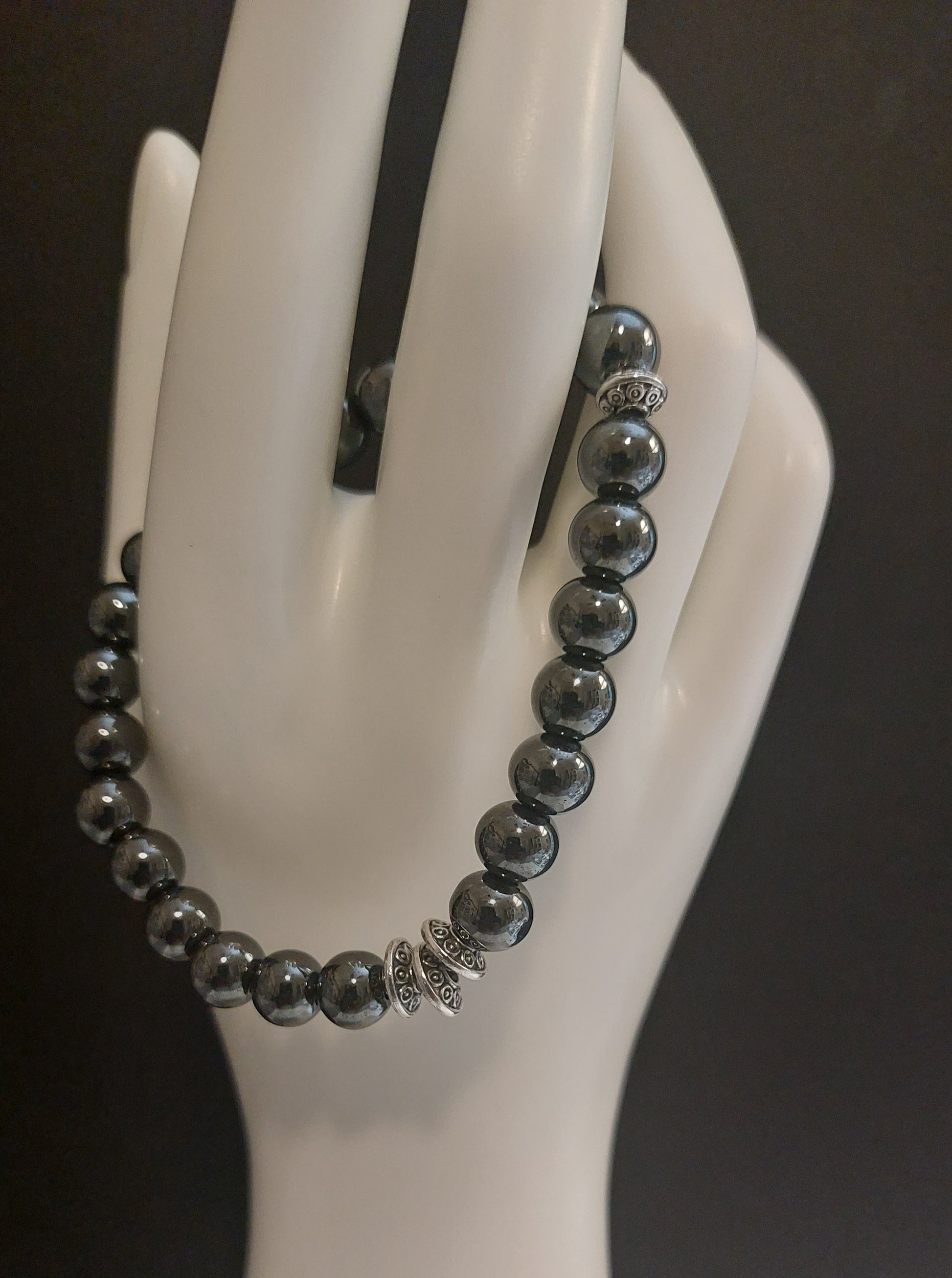 Enhance your look with our sleek metallic hematite beads bracelets, designed for both men and women. Add a touch of luxury and sophistication to any outfit with this versatile and eye-catching accessory. Perfect for elevating your look, day or night.