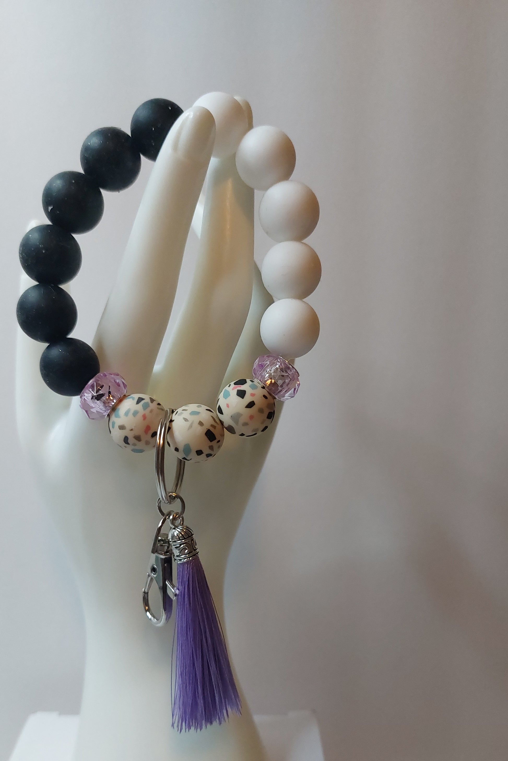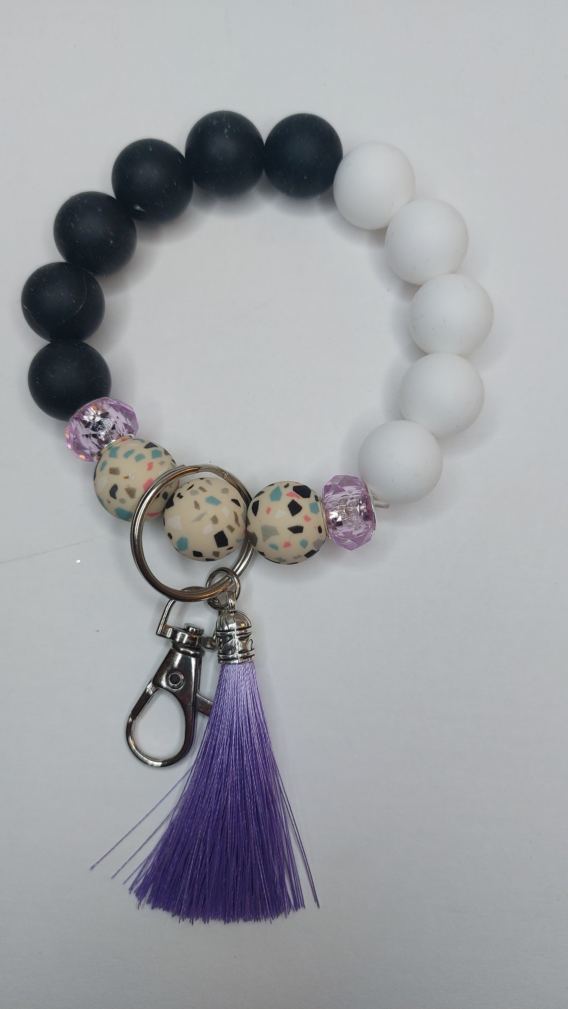 Unleash your style with these elegant and beautifully beaded slip on beautiful wristlets made with high-quality silicon and adorned with playful tassels. They add a touch of fun to your outfit while keeping your essentials close. Keep your keys organized while adding a touch of sophistication to your everyday life. Elevate your key game with these must-have accessories.