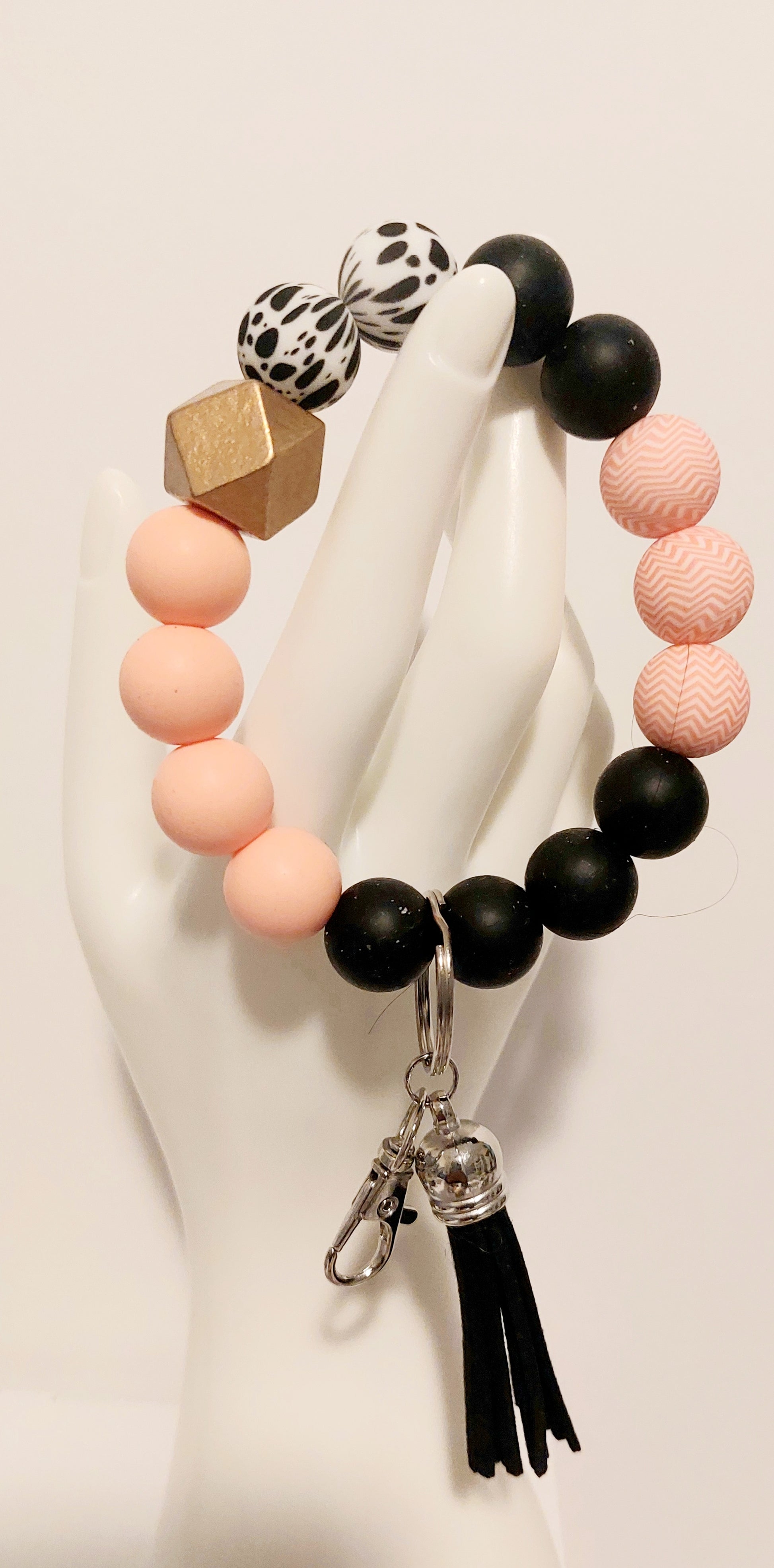 Unleash your style with these elegant and beautifully beaded slip on beautiful wristlets made with high-quality silicon and adorned with playful tassels. They add a touch of fun to your outfit while keeping your essentials close. Keep your keys organized while adding a touch of sophistication to your everyday life. Elevate your key game with these must-have accessories.
