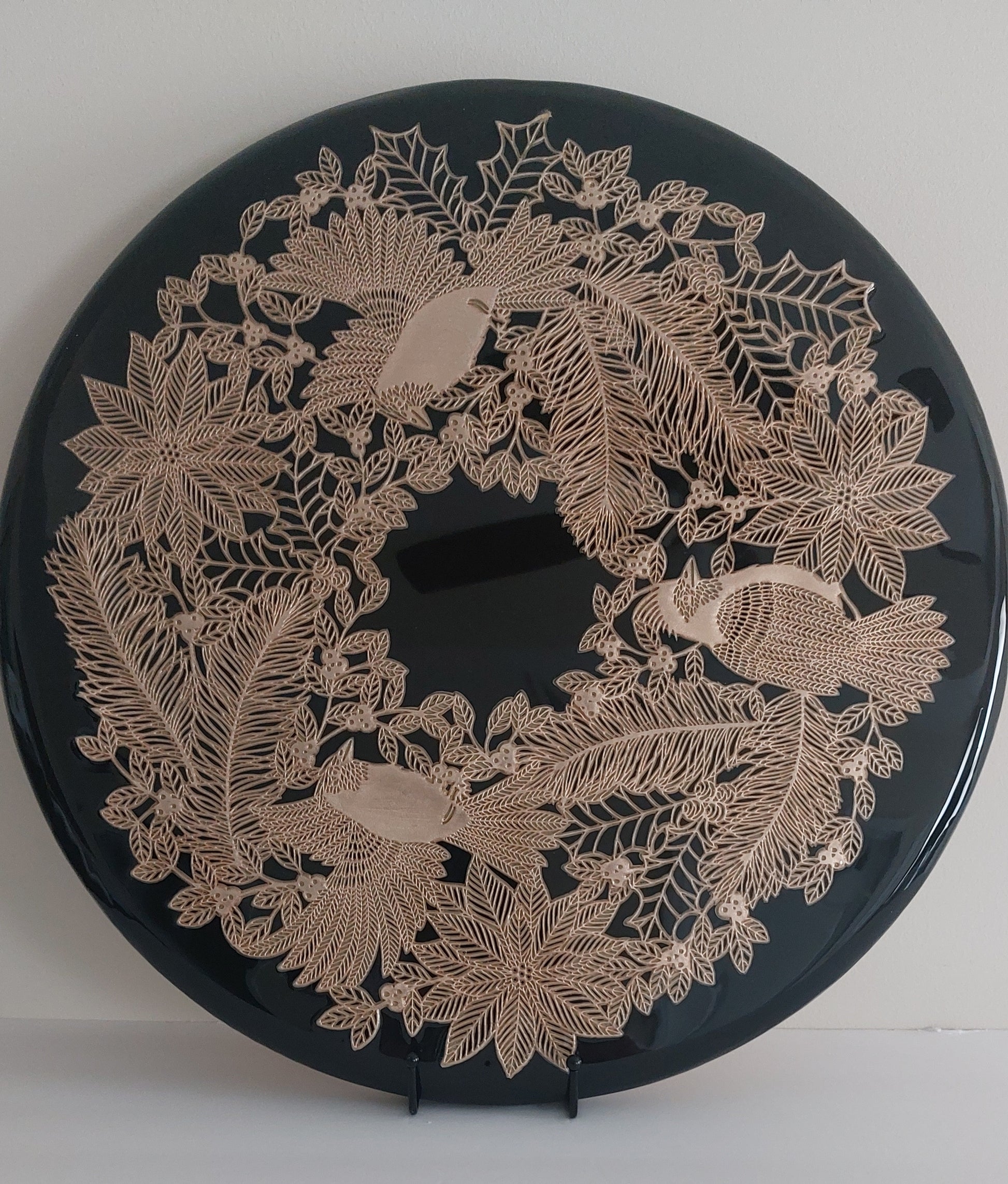 Handcrafted using 18" wooden rounds and adorned with hand-painted designs using luxurious resin and acrylic paint, these statement pieces add unparalleled style to any home. Elevate your hosting game with our one-of-a-kind and exclusive collection.