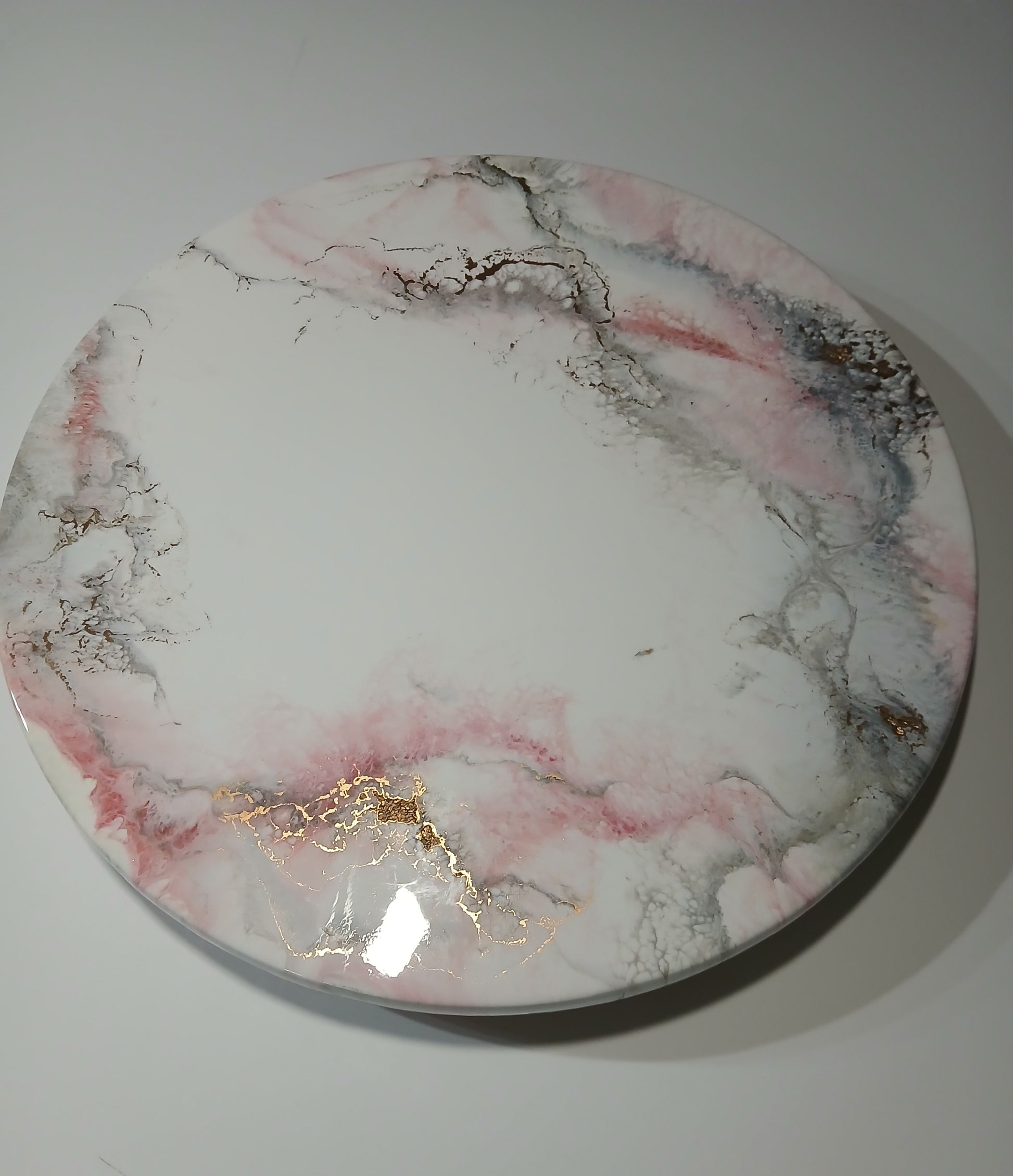 Elevate your living space with this beautifully crafted pink, gray, gold and black Lazy Susan. Its striking design adds a touch of sophistication and timeless elegance to any room, making it a stunning centerpiece for your home decor. Perfect for serving or organizing, this piece combines functionality with artistic flair to enhance your everyday living experience.