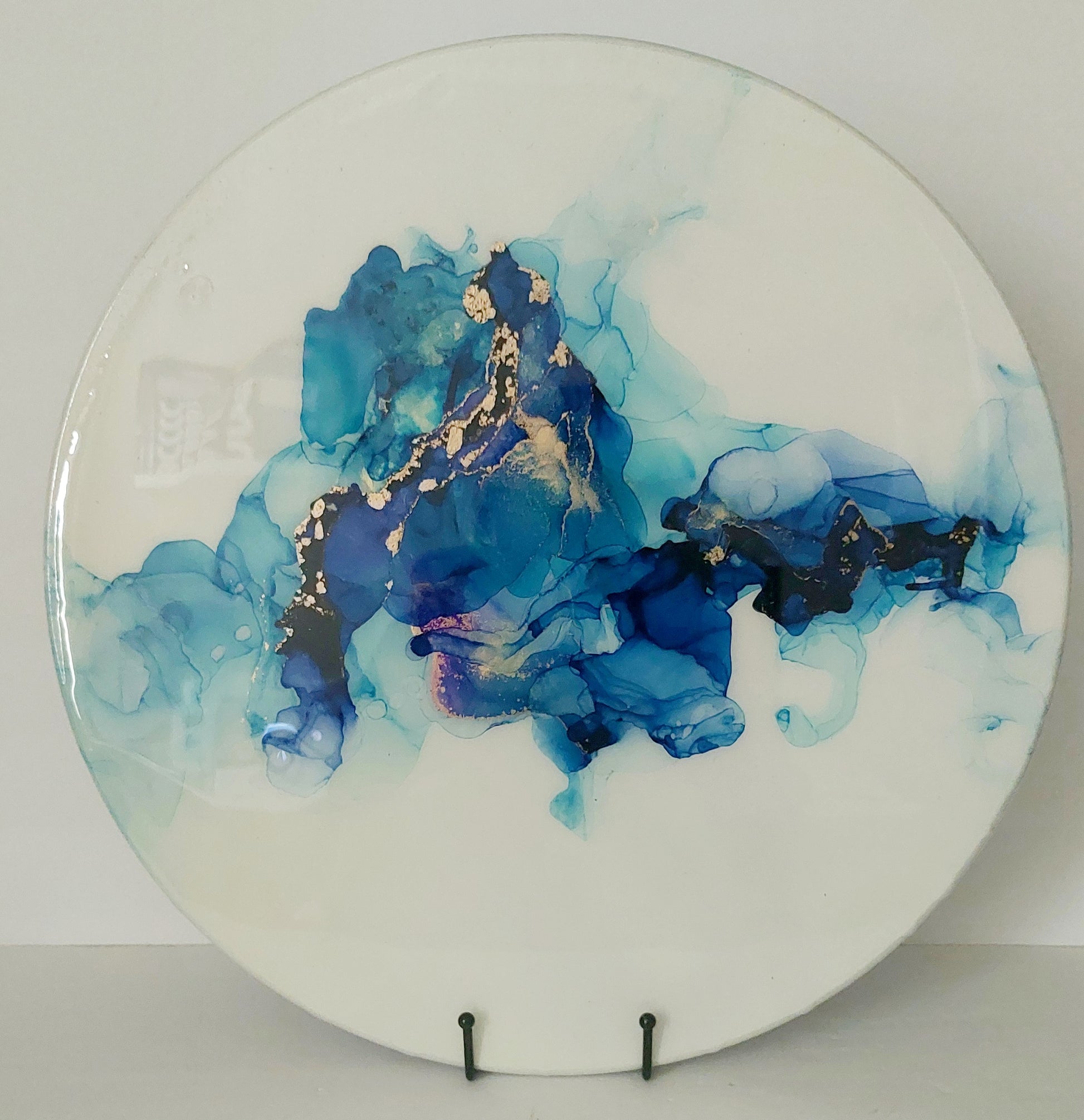 Handcrafted using a 15" wooden round and a hand-painted design using luxurious resin and alcohol ink, this statement piece adds unparalleled style to any home. Elevate your hosting game with our one-of-a-kind and exclusive collection.