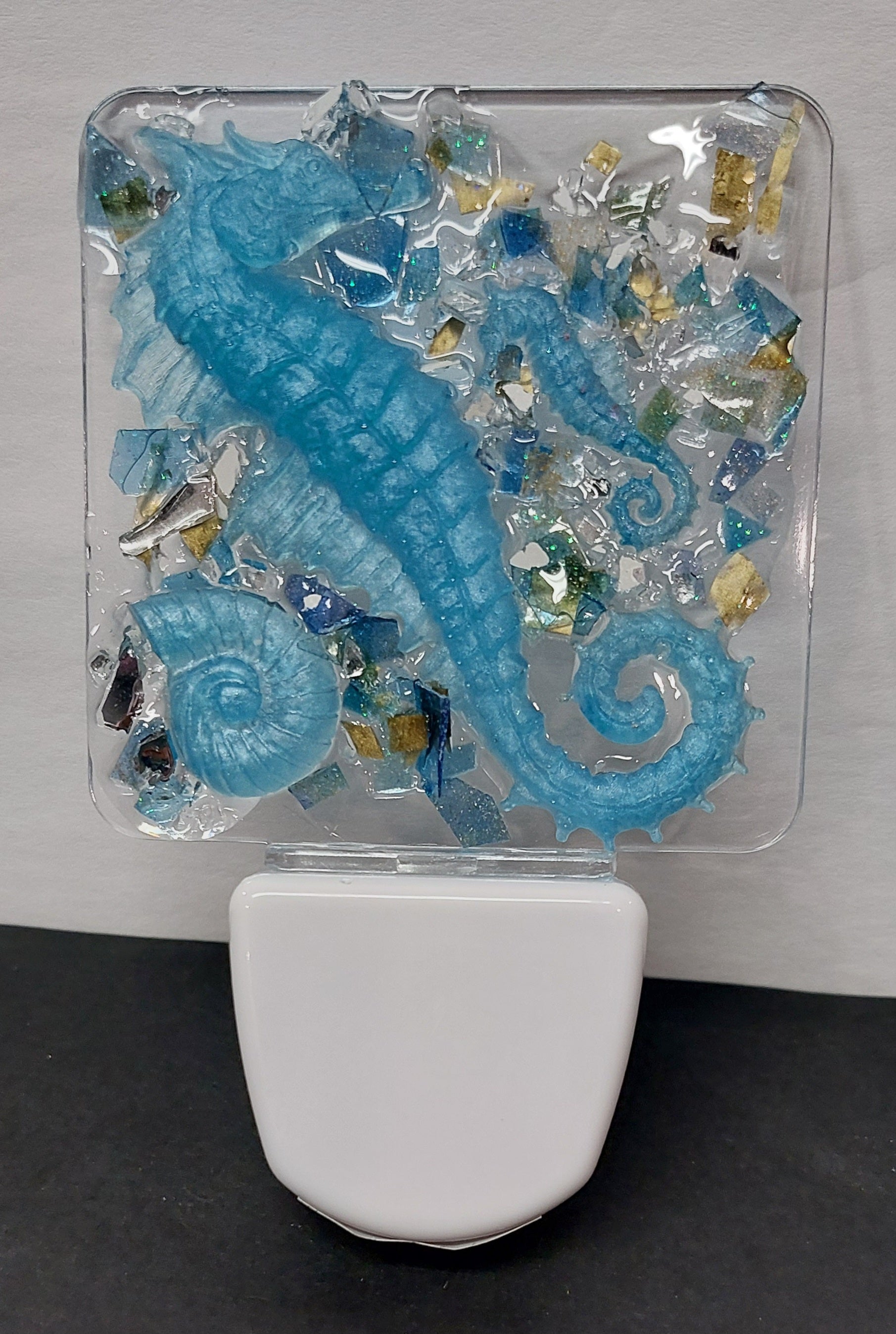 Add a touch of whimsy to your home with our beautifully crafted nightlights! With charming designs featuring resin shells, mermaids, crystal, and glitter, these LED plug-ins will bring a touch of enchantment to any room. Fall asleep the soft glow of its blue light, perhaps a hint of magic and the soothing images of the beach.