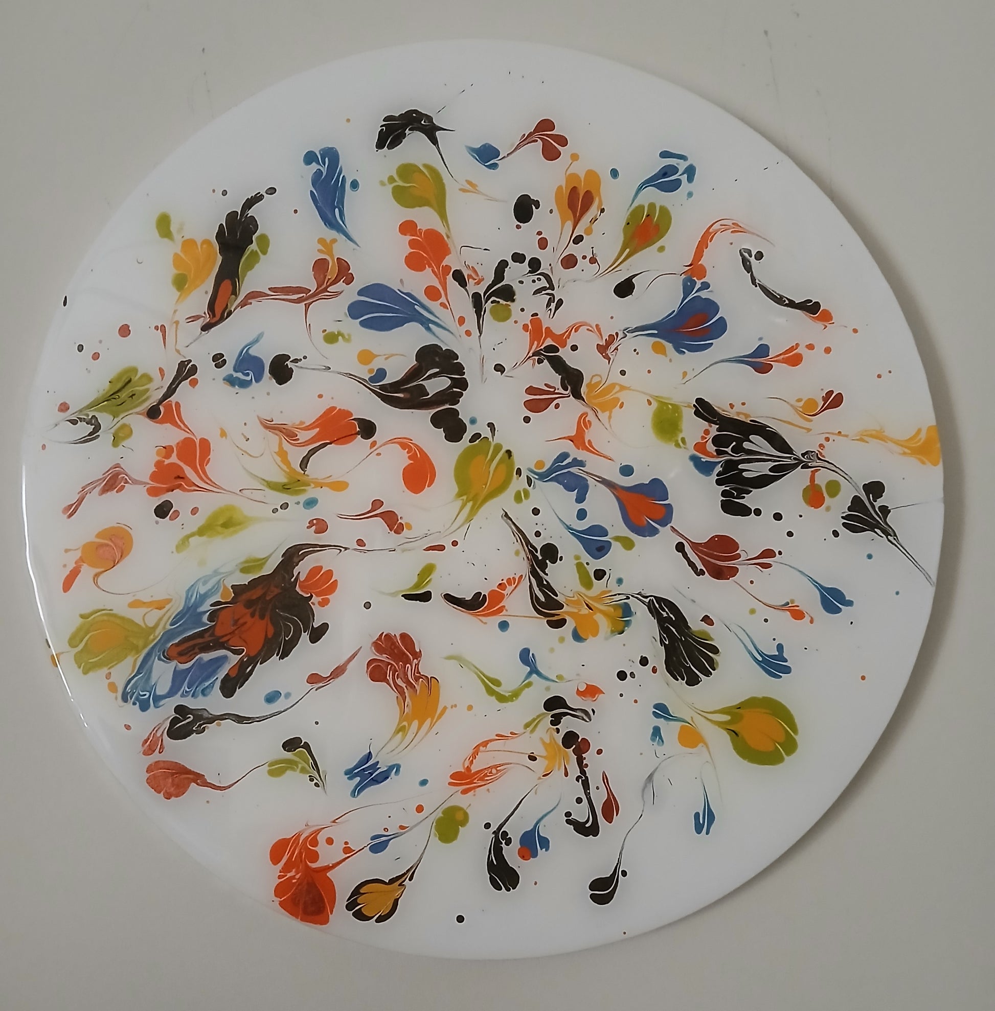 Experience a sophisticated blend of vibrant hues with this wall art, where blues, reds, greens, yellows, blacks, and oranges swirl gracefully like ethereal fairies against a pristine white backdrop. This dynamic composition brings movement and elegance to any space, inviting the eye to dance through its daring interplay of color and light. Perfect for adding a refined yet lively touch to your décor.